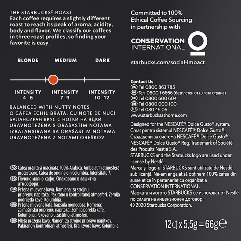 Nescafé Dolce Gusto Кафе капсула Starbucks, Medium Colombia, 12 броя