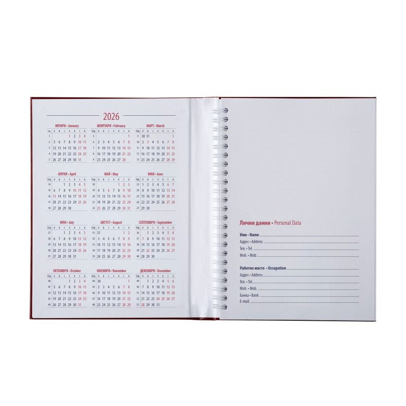 Календар-бележник Дакота, без дати, A5, със спирала, бордо