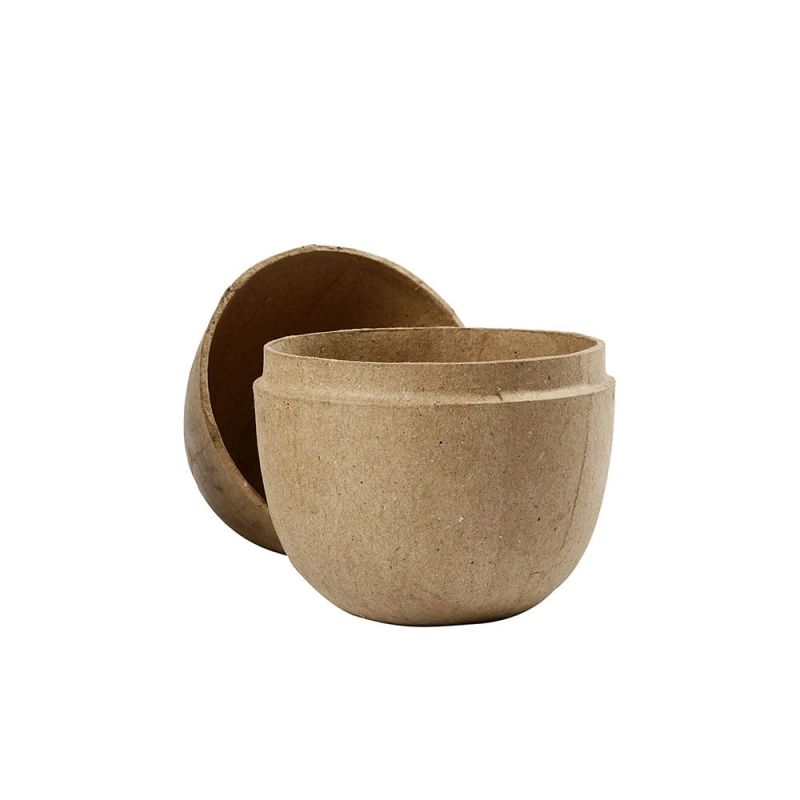 Ръчно изработено яйце от две части, изработено от папиемаше с пластмасова вътрешност, която осигурява стабилност.