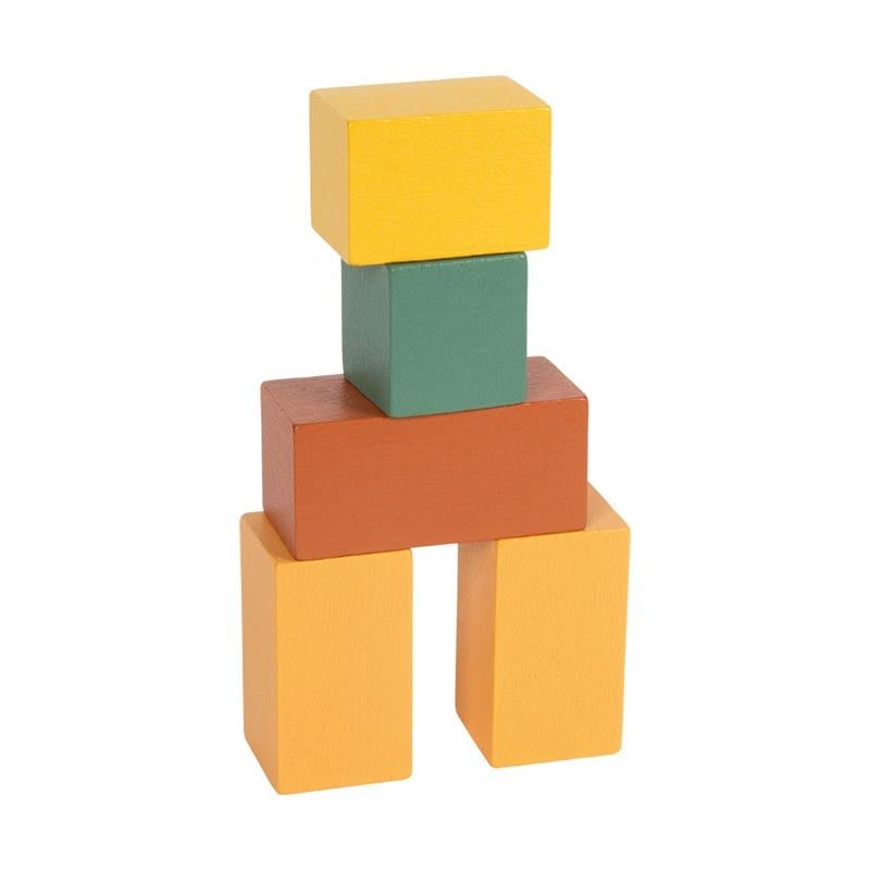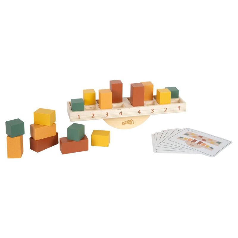 • Съдържа 16 цветни дървени блокчета с различна височина и тегло.