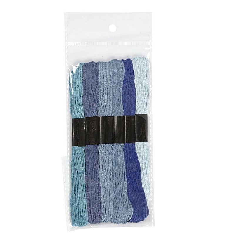 Конци за бродиране/тъкане от 6 нишки с много фино качество – 100% мерсеризиран памук.Асортимент с 6 съчетаващи се цвята, всеки по 8 m, с дебелина 1 mm. Цвят: син.