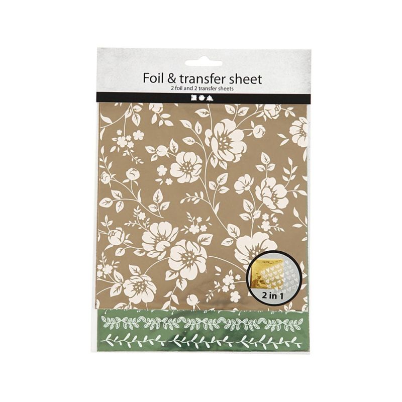 Creativ Company Декоративно фолио, с мотив цветя, зелено и златисто