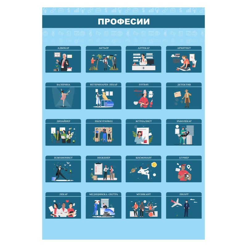 Office 1 Ученическо табло ''Професии'', двустранно, 70 x 100 cm
