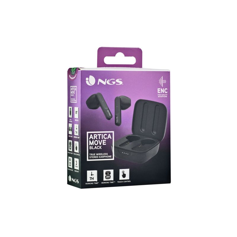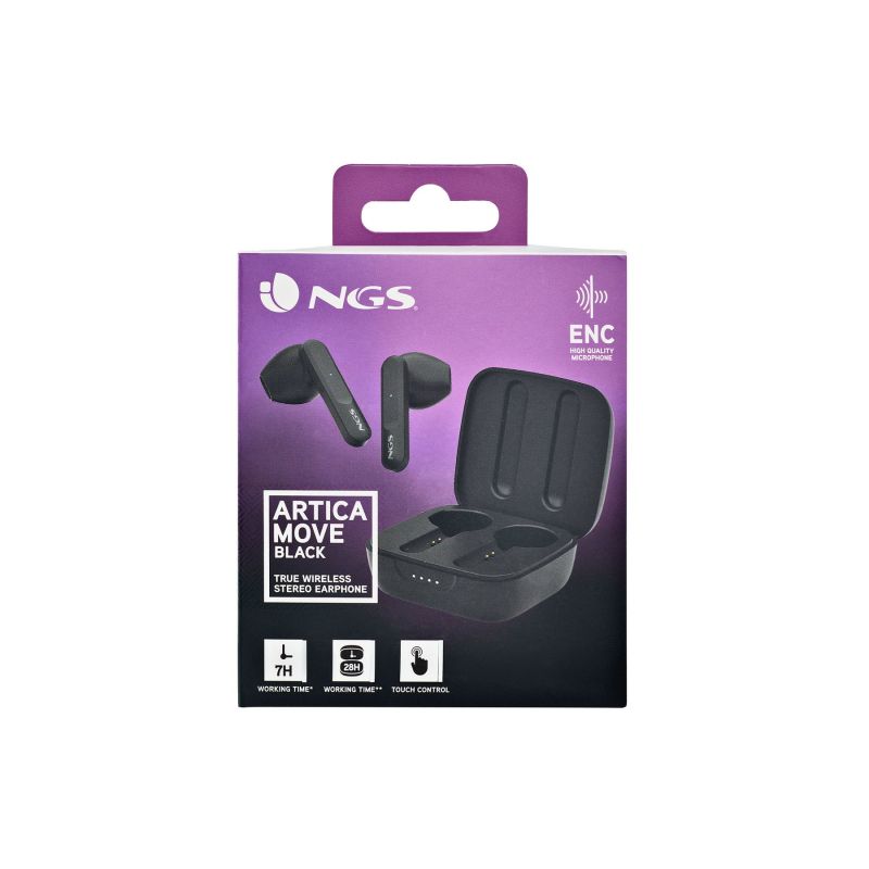 NGS Слушалки Artica Move, с Bluetooth, със зареждащ кейс, черни