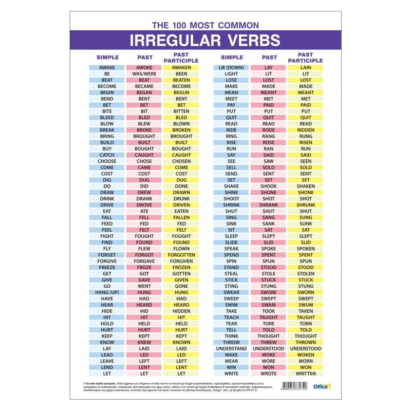 Office 1 Ученическо табло ''100 неправилни глагола в английския език, двустранно'', 70 x 100 cm