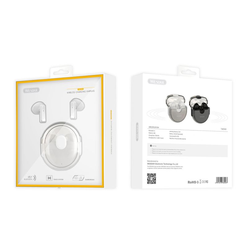 Wesdar Слушалки TWS165 , безжични, с Bluetooth, със зареждащ кейс, бели