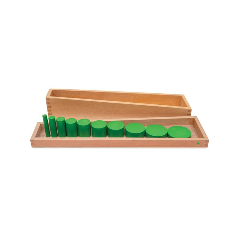 Кутия № III: зелени цилиндри - височината им се увеличава, а диаметърът на основите намалява.