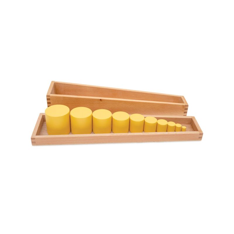 Кутия № II: жълти цилиндри - височината и диаметърът на основата им намаляват.