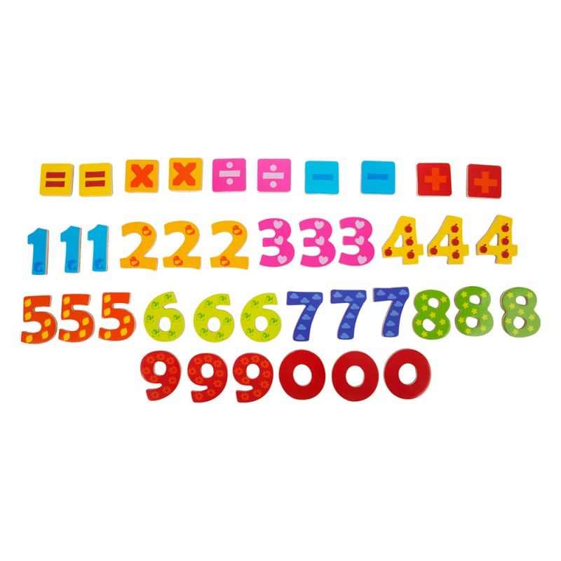 Този комплект съдържа 40 дървени цветни части с цифрите от 0 до 9. Магнитните цифри могат да се съхраняват удобно във включената дървена кутия. Ето как децата могат да създават и решават свои собствени математически уравнения. Числата могат да бъдат прикрепени към всяка магнитна повърхност и ще осигурят забавна игра и докато изучават математиката. Страхотна идея за подарък за деца, които са жадни за знания!