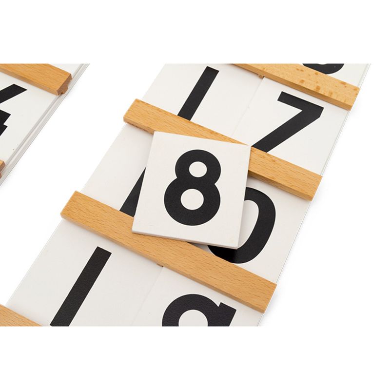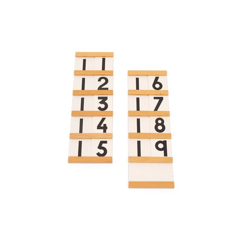 Комплектът включва плочи с цифри от 1 до 9, които могат да се плъзгат под рамката на всяка кутия, за да образуват номер. I-ва плоча - формиращи числа от 11 до 15; II-ра плоча - образуване на числа от 16 до 19.