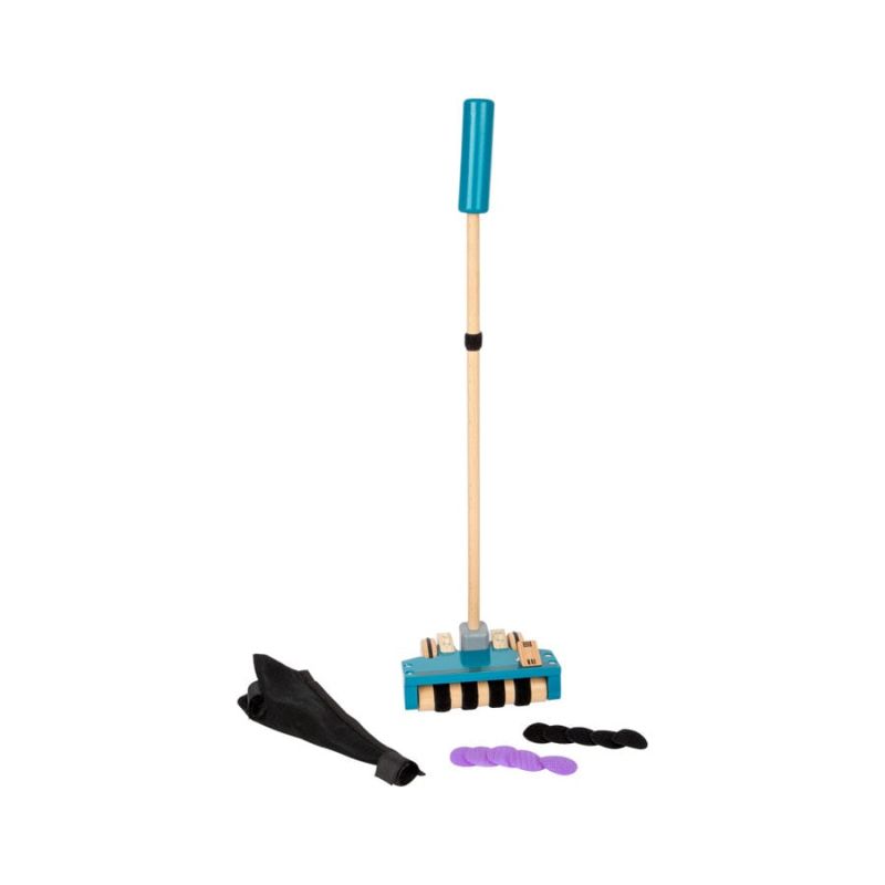 Тази многофункционална дървена прахосмукачка е играчка за бутане и ролева играчка едновременно. Малките деца могат да я ползват като помощно средство за ходене, а по-големите - в активна ролева игра.