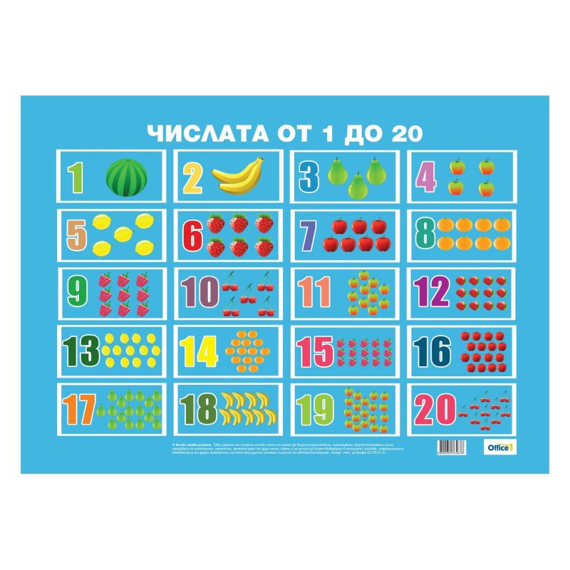 Office 1 Ученическо табло ''Цифрите от 1 до 20'', ламинирано, 50 x 70 cm