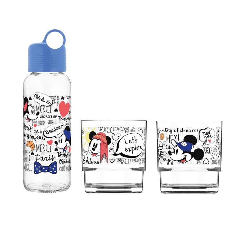 Disney Бутилка за пътуване, в комплект с 2 стъклени чаши, синя