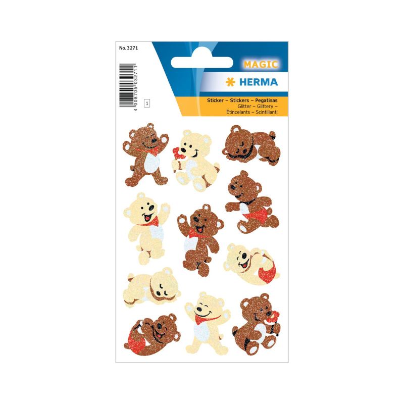 Herma Самозалепващи се етикети Мечета, глитер, 1 лист