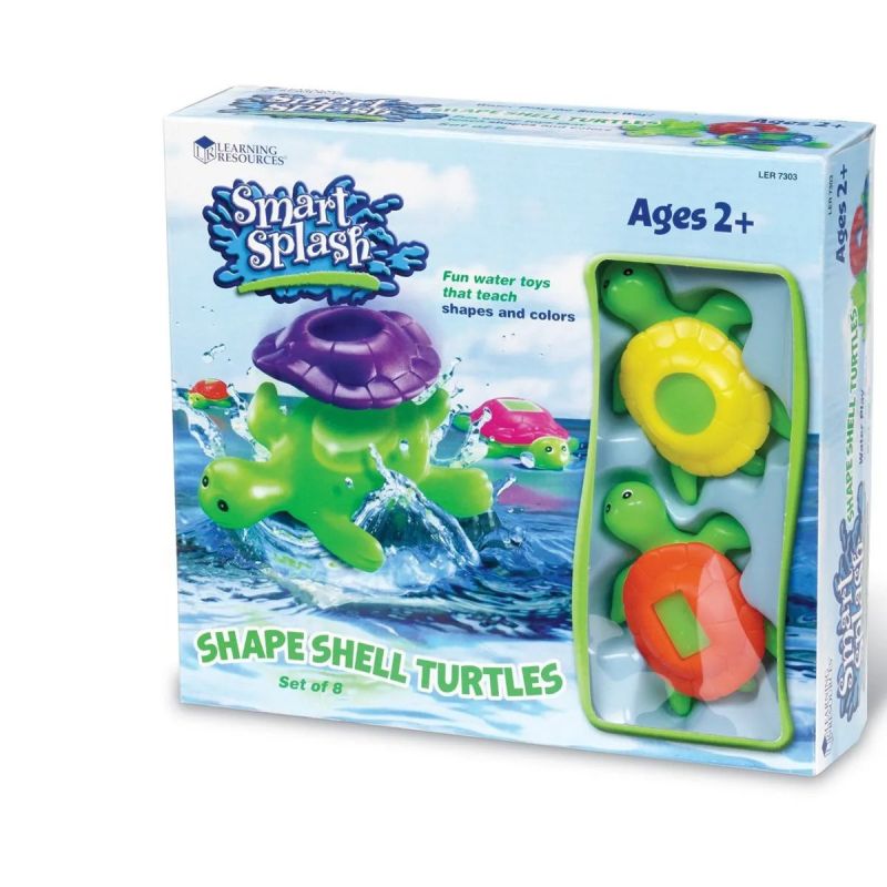 Костенурките Smart Splash® са играчки за баня, които помагат на децата да научат формите и цветовете, докато се забавляват! Всяка от 8-те костенурки има подвижна черупка с определена форма - луна, звезда, кръст, кръг, квадрат, правоъгълник, триъгълник и овал. Докато децата свързват черупките с костенурките, те развиват своите фини двигателни умения и двустранната си координация. Тези очарователни костенурки са идеални както за баня, така и за басейн.