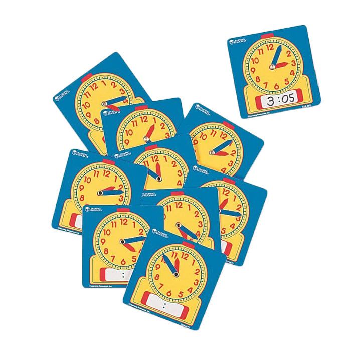 Картите за време за многократна употреба представляват ламинирани часовници с подвижни пластмасови стрелки и място за писане на часовете.Възраст: 5 – 9 години.
