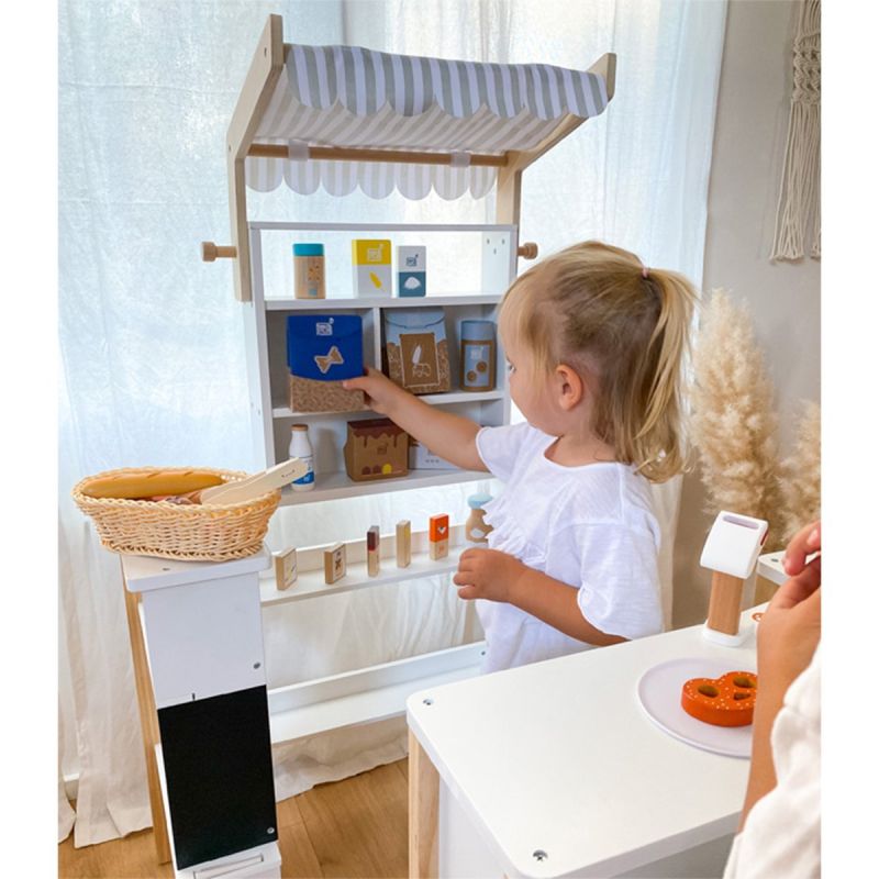 Практично и образователно: на гърба на кутията има инструкции в снимки, чрез които малките деца могат да научат как се приготвят в действителност. Децата могат първо да „купят“ дървените нудли в магазина за игри и след това да ги използват, за да приготвят въображаемо ястие в кухнята за игри по време на изпълнена с фантазия ролева игра.