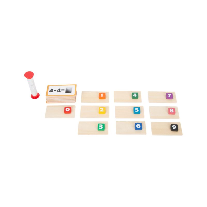 Кой може да смята най-бързо? С пъзела по математикаизработен от дърво, целта е да се решат десет математически задачи, кратни на десет, с бързо събиране и изваждане, докато пясъчният часовник изтече. За да направите това, картите за уравнения трябва да бъдат поставени с правилните плочки за решение. Със 110 различни математически задачи и функция за самопроверка, той е идеален за деца в предучилищна възраст и деца в началното училище. Играта може да се играе и от много хора, а в края играчите могат да сравняват и да видят кой е решил най-много задачи. Начинаещите могат да играят и без пясъчен часовник, което е идеално за деца в предучилищна възраст и деца в началното училище, които тепърва изучават събиране и изваждане. За лесна самопроверка, обратните страни на картите са със съответното решение. Всички плочки с цифри и игрални карти се съхраняват сигурно в дървената кутия с плъзгащ се капак и да могат да бъдат взети, когато сте в движение.