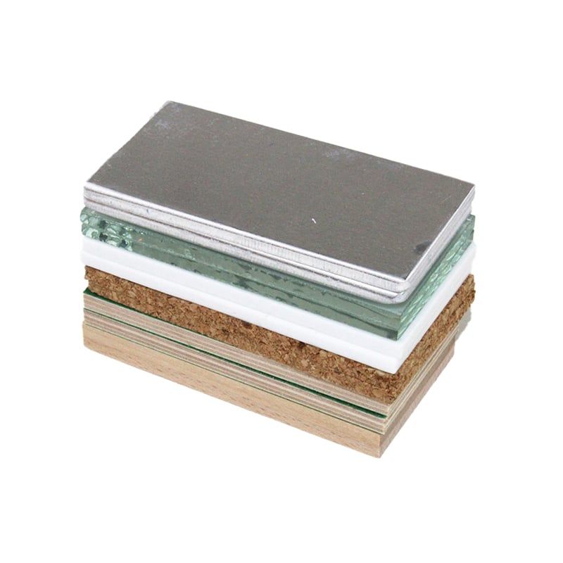 • Комплектът съдържа 6 двойки плочки от различни материали: