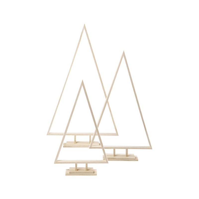 Creativ Company Елхи за декорация, дървени, триъгълни, различни размери, 3 броя