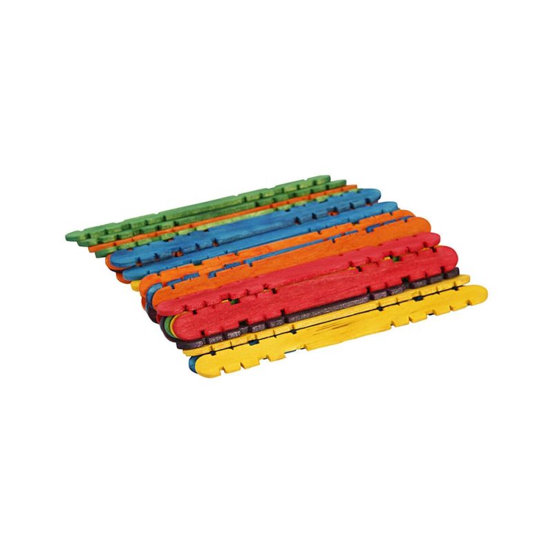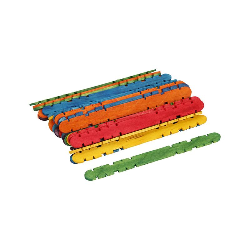 Дървени пръчици за сглобяване, произведени от светло дърво в 6 различни цвята – синьо, зелено, жълто, лилаво, оранжево, червено, бреза.