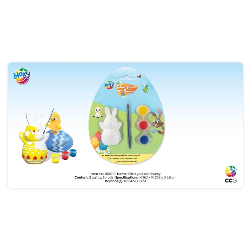 Moxy Фигурка за оцветяване - Заек, 7 cm, с бои и четка
