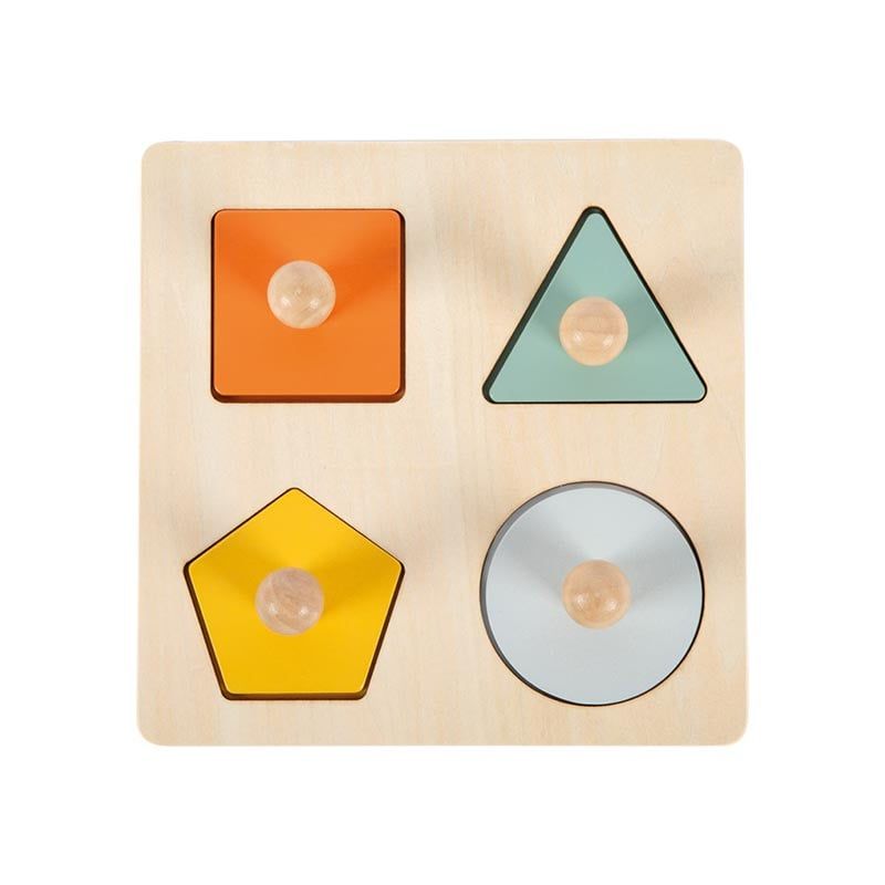 Здрав дървен пъзел с копчета, който съчетава съпоставяне на форми с приятни изненади: повдигни елементите, за да откриеш лица от джунглата и безопасно за деца огледалце. Перфектен за ранно любопитство и сръчност.