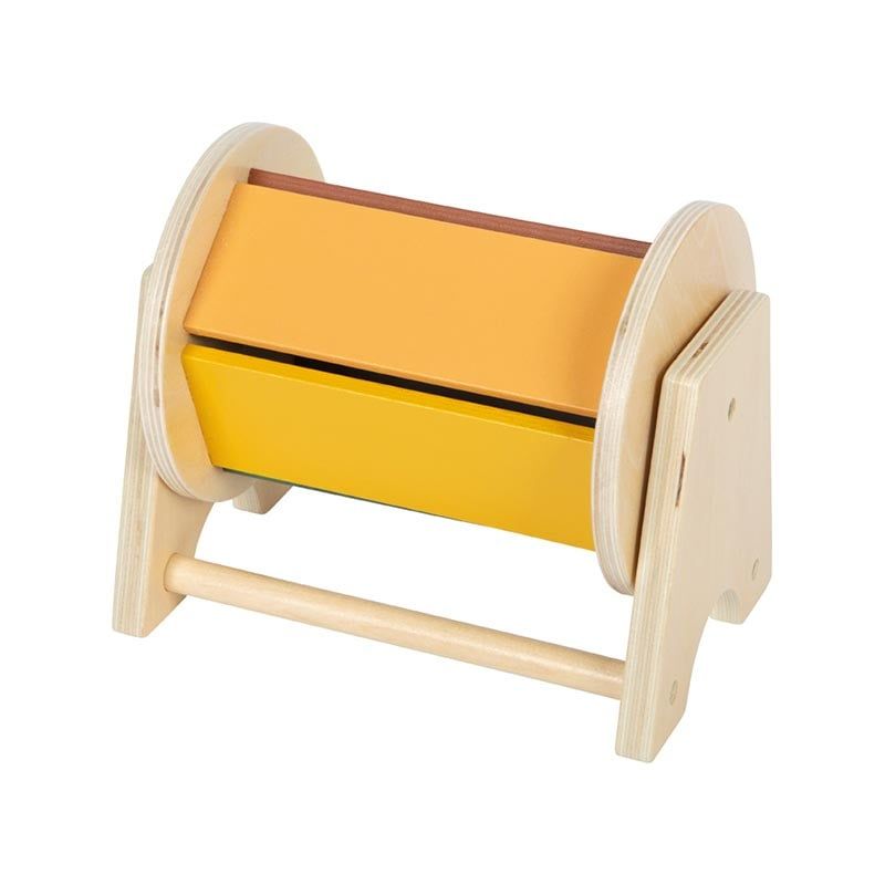 Дървеният въртящ се барабан пробужда любопитството у децата около 6 месеца: бебетата могат да лежат по корем, да се подпират на предмишниците и с увлечение да наблюдават цветното въртене и звука на интегрираното дървено топче. Проследяването на движението с очи и хващането на барабана укрепва торса, врата и усещането за баланс – важни стъпки по пътя към позата за пълзене.