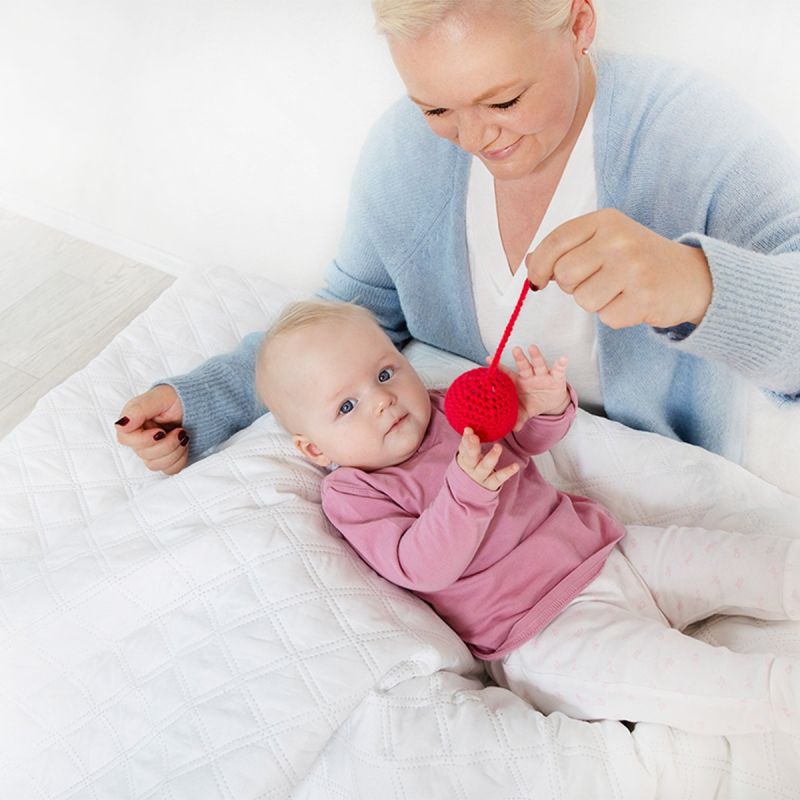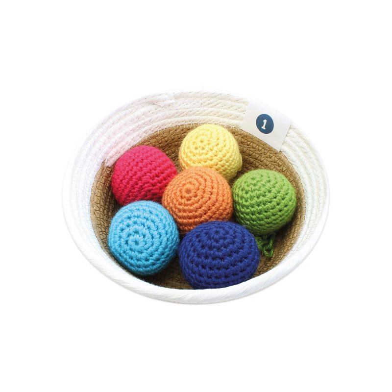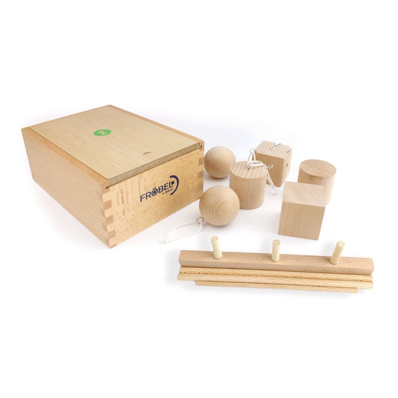 Според Фрьобел топката е първата играчка на детето. Затова този комплект е чудесен за първите срещи на децата със света – шестте вълнени топки ще привлекат интереса му със своето движение. А в следващите етапи от своето развитие, дървените топка, кубче и цилиндър ще го въведат в света на движението. С тази играчка децата ще експериментират спокойно и безопасно.