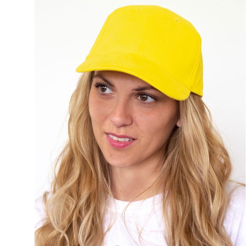 Бейзболна шапка, 6-панелна, жълта, с включен печат на лого до 10 x 10 cm