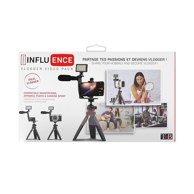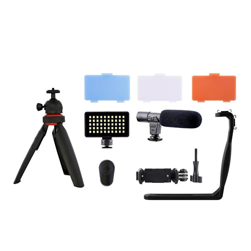 Заснемете своето творчеството и дайте свобода на своята креативност с този комплект с аксесоари за влогъри. Той съдържа всичко необходимо за вашите видеоклипове: статив, държач за смартфон, микрофон, LED светкавица и Bluetooth дистанционни управления, филтри.