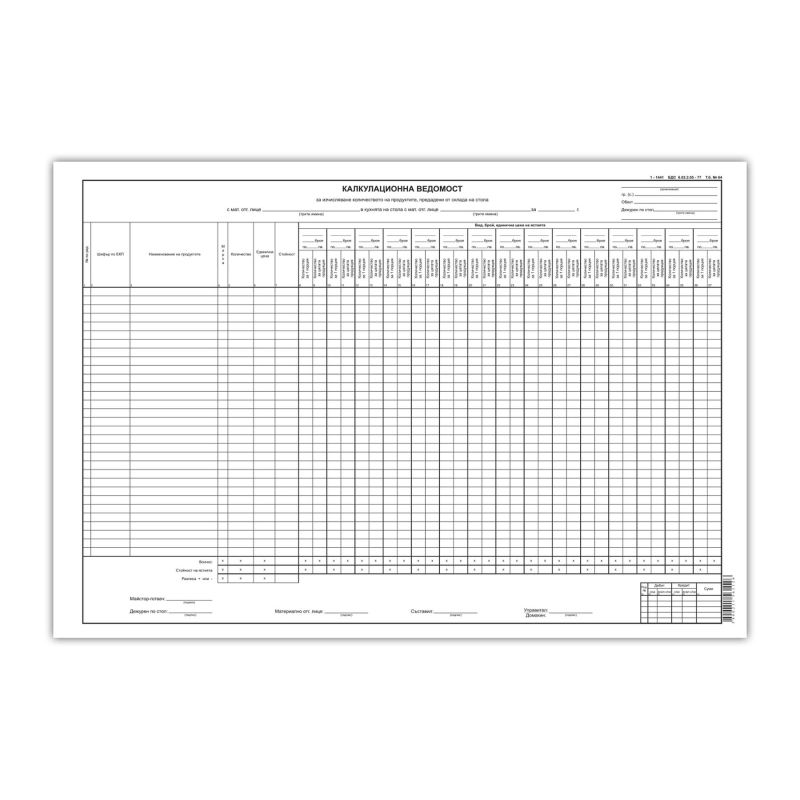 Калкулационна ведомост, 50 листа
