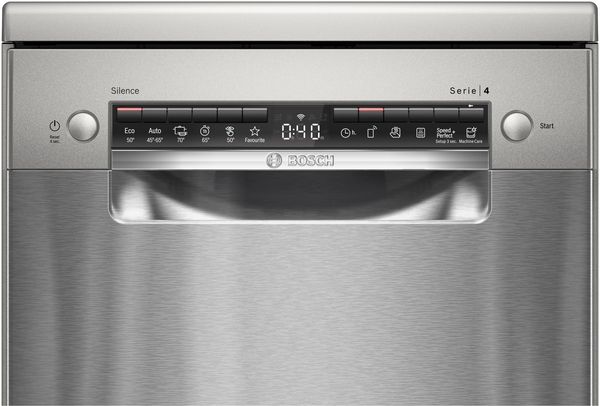 Свободностояща съдомиялна със защита от отпечатъци.Автоматично отваряне на вратата за по-добри резултати от сушенето.Компактни кошници VarioFlex и чекмеджета VarioDrawer. Благодарение на тройната система от кошници, височината на горната кошница може лесно да се регулира с до 5 см. И можете да направите това, когато е напълно заредена. Това означава още повече възможности за настройка и по този начин максимална гъвкавост.Понякога се нуждаете от допълнителна безшумна среда у дома, за да се съсредоточите върху ежедневните си задължения. Функцията Silence on demand може да се активира от приложението Home Connect и намалява шума от вашата съдомиялна машина, когато е необходимо. Извлечете максимума от свързаната съдомиялна машина, като облекчите ежедневието си. С функцията Favourite можете просто да настроите най-използваните програми и опции като любимата си комбинация. Програмираната настройка може да се стартира чрез приложението Home Connect или директно на дисплея с една стъпка.Защитата от протичане е от огромно значение при съдомиялните. Системата Aqua Stop осигурява надеждна защита от течове. Когато датчикът засече теч, уредът автоматично спира и изпомпва водата през двуслоен маркуч. С AquaStop сте защитени от наводнения – гаранция, която получавате за целия жизнен цикъл на уреда.Технологията ActiveWater увеличава до голяма степен ефикасността и гарантира екологосъобразно изплакване за отлични резултати. Благодарение на целевото разпределение на водата, оптимизираната филтърна технология, по-бързото нагряване и по-качествената работа на помпата за циркулиране на водата се реализира икономия на вода и ток.