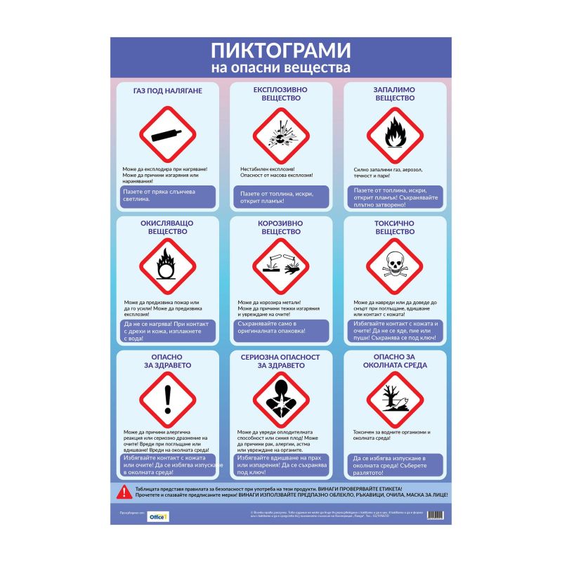 Office 1 Ученическо табло ''Пиктограми на опасни вещества'', 70 x 100 cm