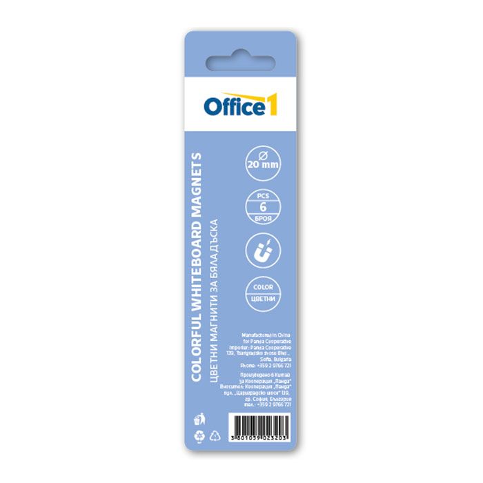 Office 1 Магнити, за бяла дъска, цветни, 20 mm, 6 броя
