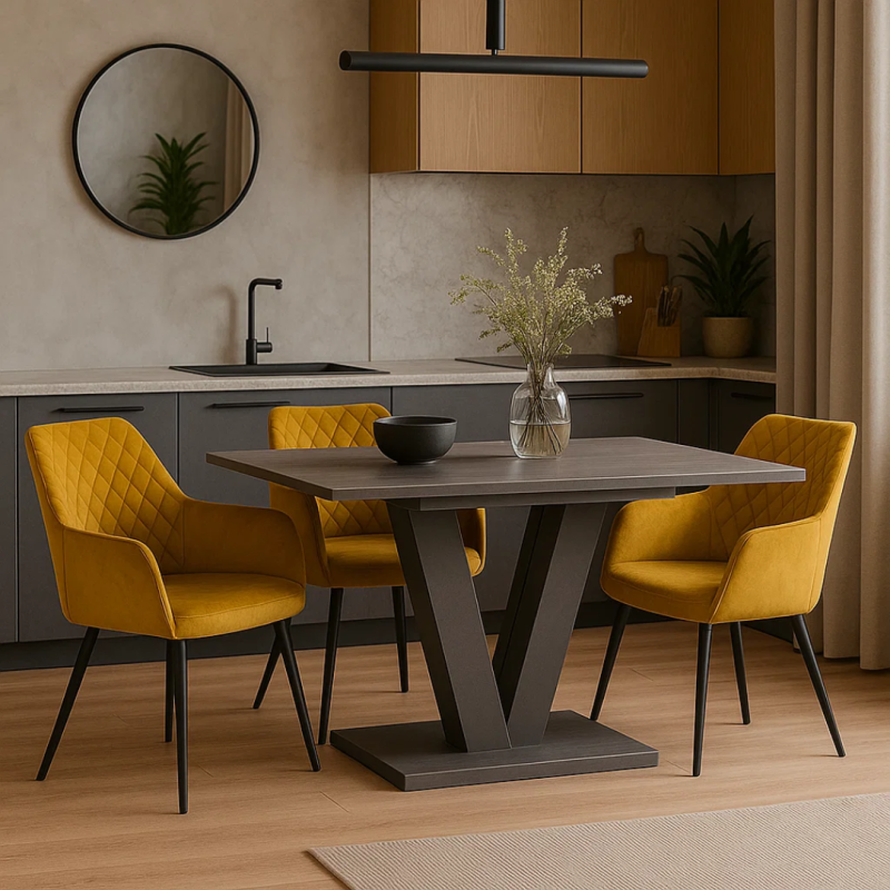 С трапезния стол ETON ще се радвате на стил и удобство. Неговата комфортна седалка е изработена от нежна дамаска, а краката му от праховобоядисан метал. Пълна информация за размерите и характеристиките на модела ще намерите в таблицата в таб/поле "Техническа информация".