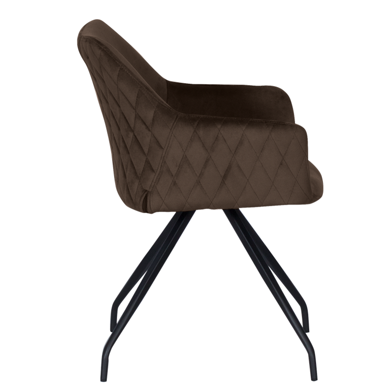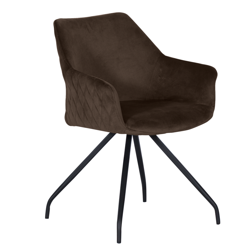 Трапезният стол KENDAL е модел с модерен и стилен дизайн. Той комбинира удобна седалка тип кресло, изработена от нежна дамаска и интересни крака от праховобоядисан метал. Пълна информация за размерите и характеристиките на модела ще намерите в таблицата в таб/поле "Техническа информация".