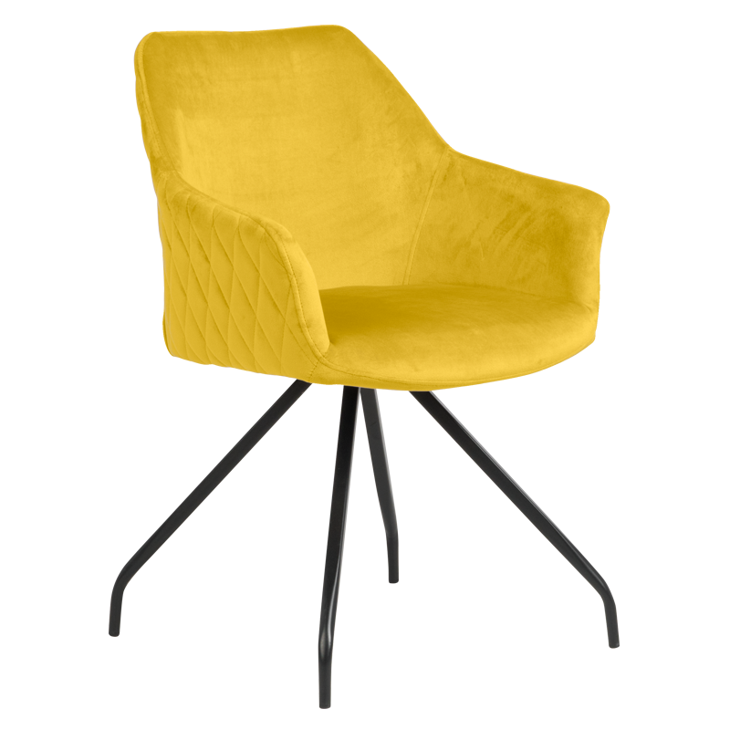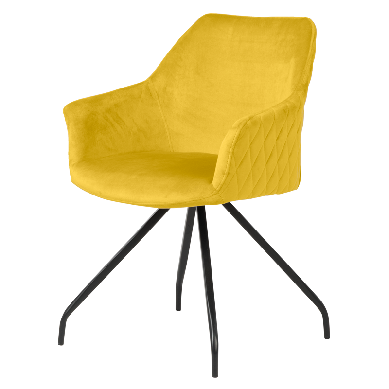 Трапезният стол KENDAL е модел с модерен и стилен дизайн. Той комбинира удобна седалка тип кресло, изработена от нежна дамаска и интересни крака от праховобоядисан метал. Пълна информация за размерите и характеристиките на модела ще намерите в таблицата в таб/поле "Техническа информация".
