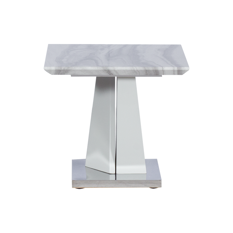 IDAHO е стилна холна маса с интересен дизайн, който създава усещане за лукс в помещението. Моделът е изработен от висококачествен МДФ материал с дебел плот, чиято горна част наподобява шарките на мрамор, а за долната част на основата е използвана неръждаема стомана. Пълна информация за размерите и характеристиките на модела ще намерите в таблицата в таб/поле "Техническа информация".