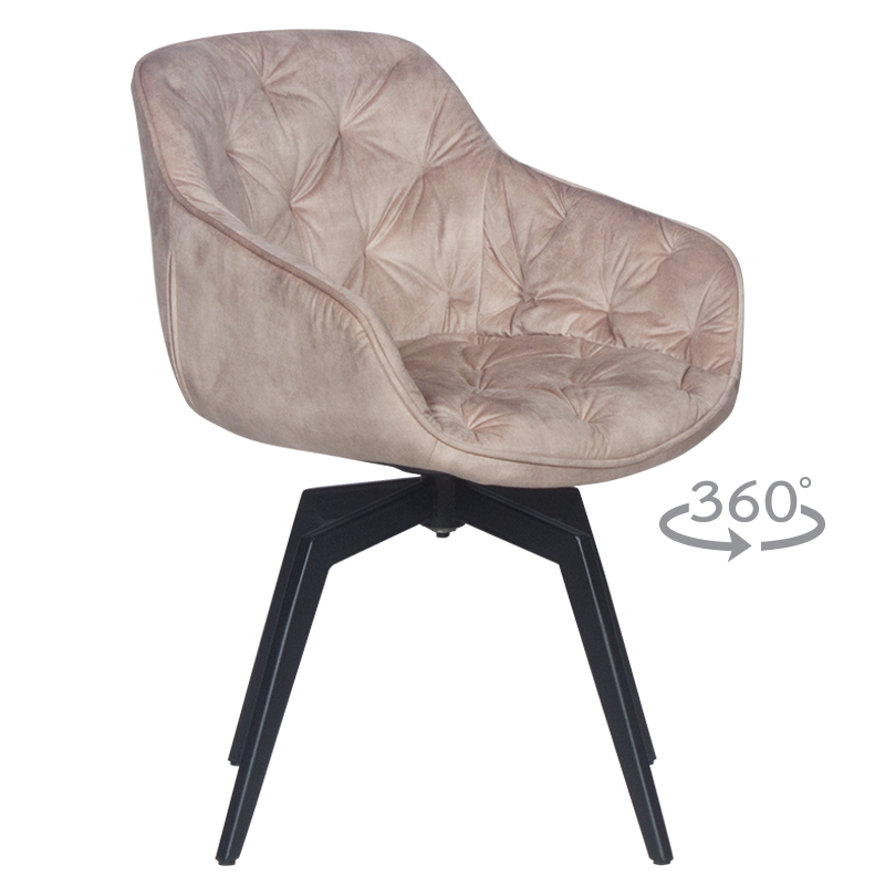 Трапезният стол BUXTON е удобен модел с елегантен и стилен дизайн, който ще се впише с лекота в интериора на изисканите ресторанти и ще създаде усещане за лукс във всеки дом. За изработката му е използвана дамаска и праховобоядисан метал за краката. За още по-голям комфорт, моделът предлага и функция за завъртане на 360°. Пълна информация за размерите и характеристиките на модела ще намерите в таблицата в таб/поле "Техническа информация".