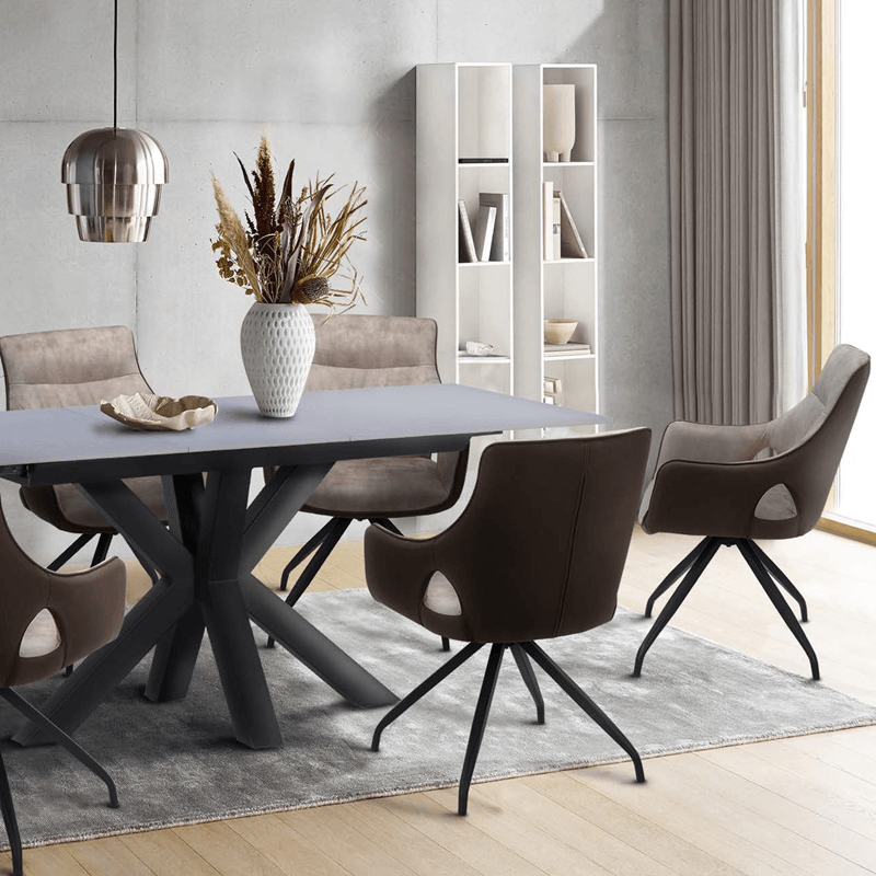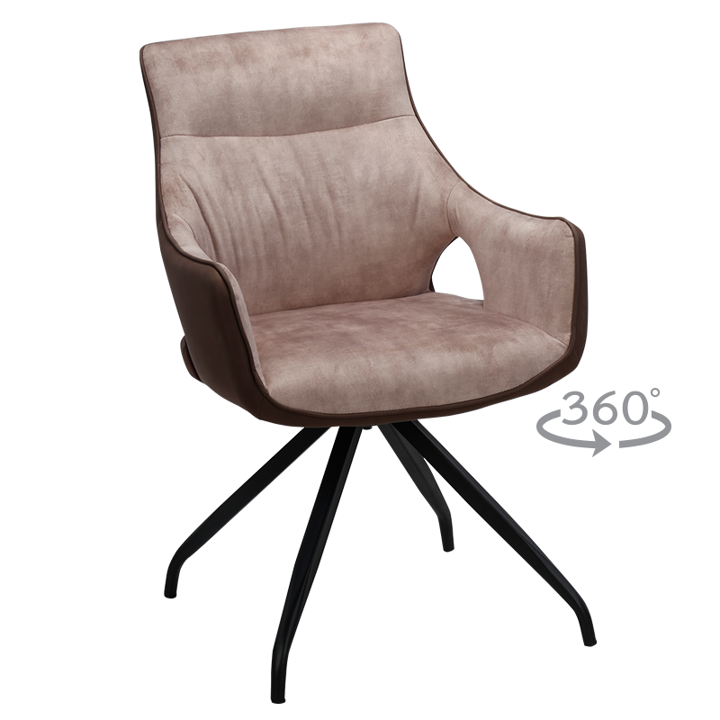 DUDLEY е модерен трапезен стол с интересен дизайн. Изработен е от висококачествена дамаска и крака от праховобоядисан метал. Mоделът разполага с подлакътници и с функция за въртене на 360°. Стилен и оригинален, той подхожда на интериора на съвременния дом, както и на първокласни ресторанти. Пълна информация за размерите и характеристиките на модела ще намерите в таблицата в таб/поле "Техническа информация".