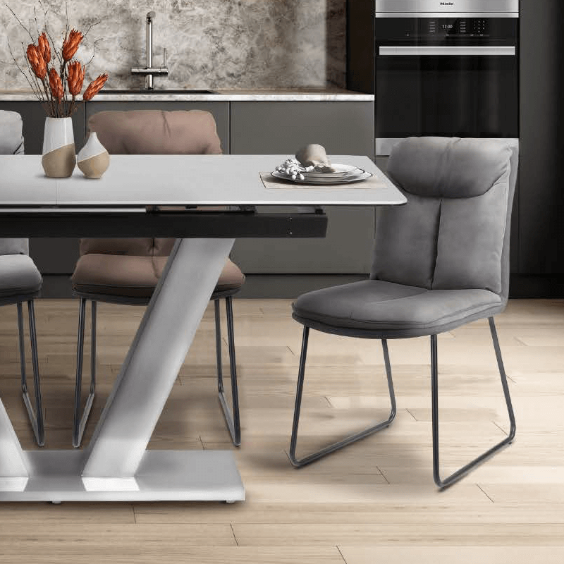 BRENT e удобен и модерен трапезен стол. Той е с оригинален и нестандартен дизайн, за изработката му е използвана висококачествена дамаска и праховобоядисан метал. Пълна информация за размерите и характеристиките на модела ще намерите в таблицата в таб/поле "Техническа информация".