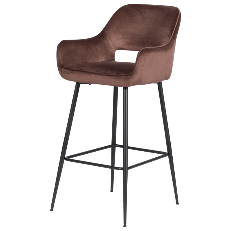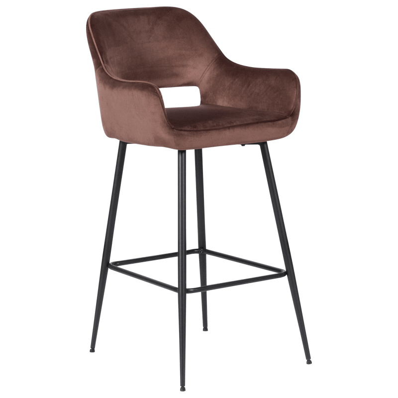 TRING e стилен и удобен бар стол с подлакътници. Той е изработен от луксозна, нежна дамаска и здрави крака от прахово боядисан метал. Пълна информация за размерите и характеристиките на модела ще намерите в таблицата в таб/поле "Техническа информация".