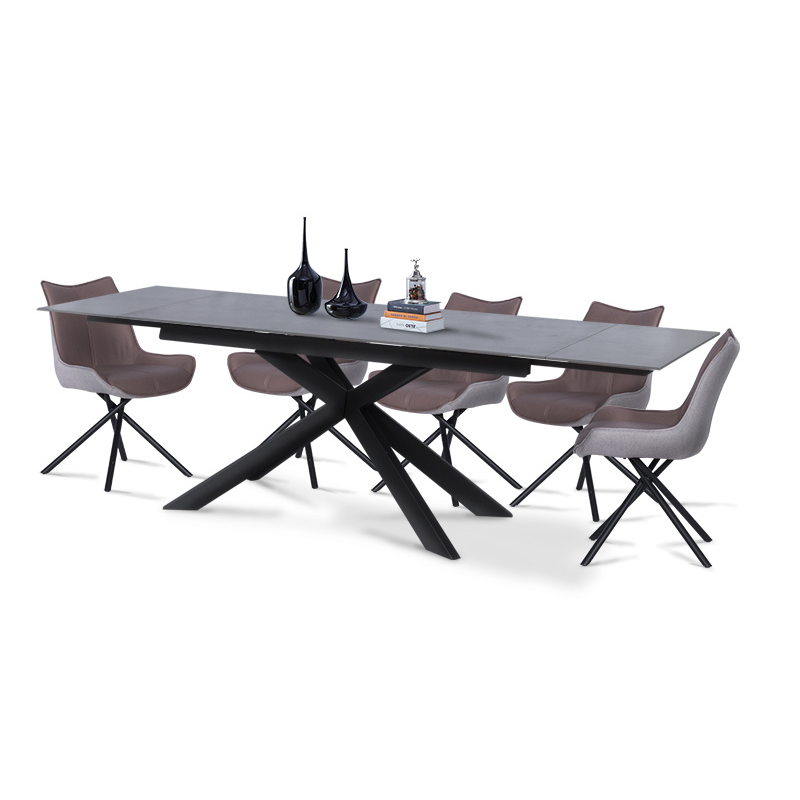 ELK е висок клас трапезна маса с масивна основа, голям керамичен плот и функция за разтягане. В неразтегнато положение масата е 180 см, а в разтегнато достига до забележителните 260 см. Дизайнът на основата е разчупен и оригинален, а праховобоядисаният метал, от който е изработена, гарантира здравина и стабилност. Пълна информация за размерите и характеристиките на модела ще намерите в таблицата в таб/поле "Техническа информация".