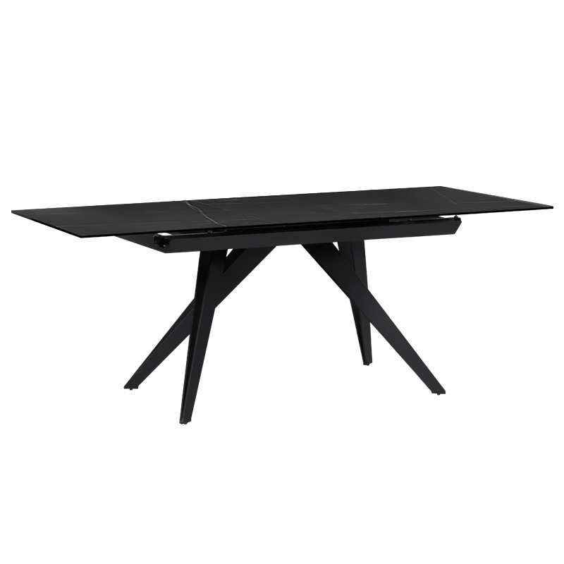 KONIN е трапезна маса с разтегална функция, която ще се превърне в стилен акцент във всеки дом. Плотът е изработен от керамика и закалено стъкло, а стабилната основа от праховобоядисан метал. Пълна информация за размерите и характеристиките на модела ще намерите в таблицата в таб/поле "Техническа информация".