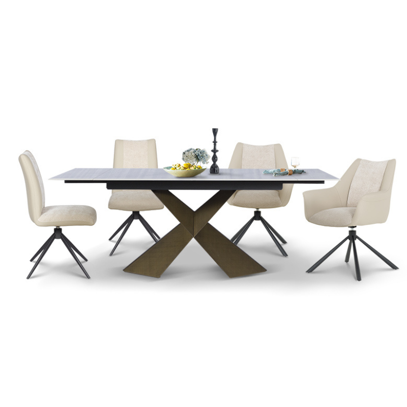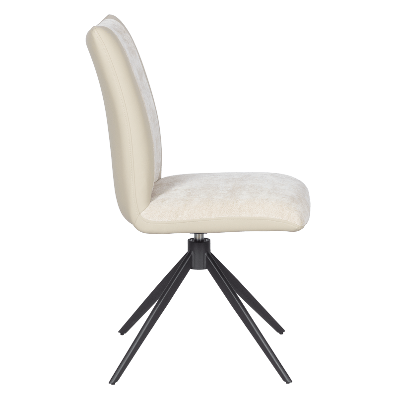 TULSA е трапезен стол с удобни седалка и облегалка, изработени от висококачествени дамаска и силиконова кожа, както и стабилни крака от праховобоядисан метал. Моделът разполага с функция за 360° въртене на основата и връщането ѝ в изходяща позиция. Със своя модерен дизайн, той е подходящ както за трапезарията у дома, така и за интериора на заведения. Пълна информация за размерите и характеристиките на модела ще намерите в таблицата в таб/поле "Техническа информация".
