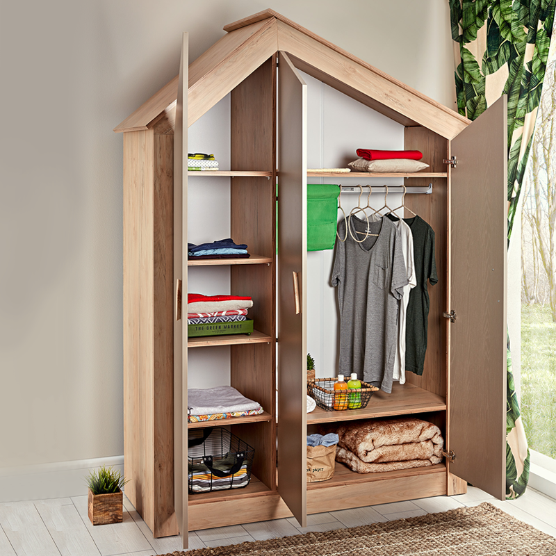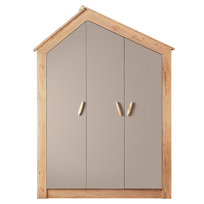 Трикрилен детски гардероб MY HOUSE ще внесе стил и функционалност във всяка детска стая. Той разполага с плавно затваряне на вратите, с 6 рафта, които осигуряват достатъчно място за дрехите на детето, както и един лост за закачалки. Изработен е от висококачествено ПДЧ, което гарантира здравина и стабилност. Неутралните му цветове го правят чудесен избор за различни интериори.