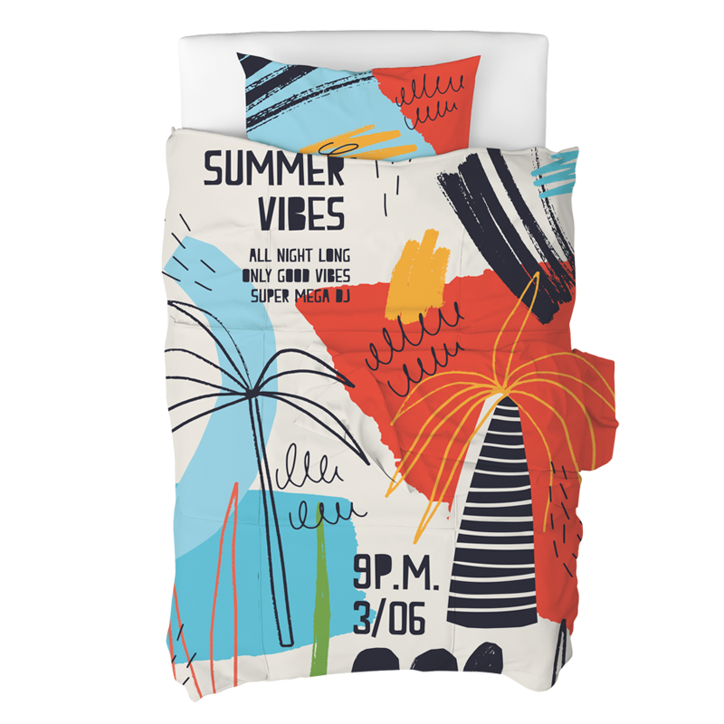 Практичен и стилен комплект, изработен от микрофибърна материя, устойчива на петна, с висококачествени UV щампи. Кувертюрата съдържа 130 g/m² термо влакна за оптимален комфорт. Материалите са антибактериални, антиалергични и антиканцерогенни, без вредни вещества. Препоръчва се химическо чистене за възглавниците и кувертюрата, а чаршафът може да се пере в пералня. Съдържа дълга възглавница (105x30 см), възглавница (90x43 см), калъфка (70x50 см), тънка завивка/пике (140x210 см) и чаршаф с ластик (152x252 см). Пълна информация за размерите и характеристиките на модела ще намерите в таблицата в таб/поле "Техническа информация".