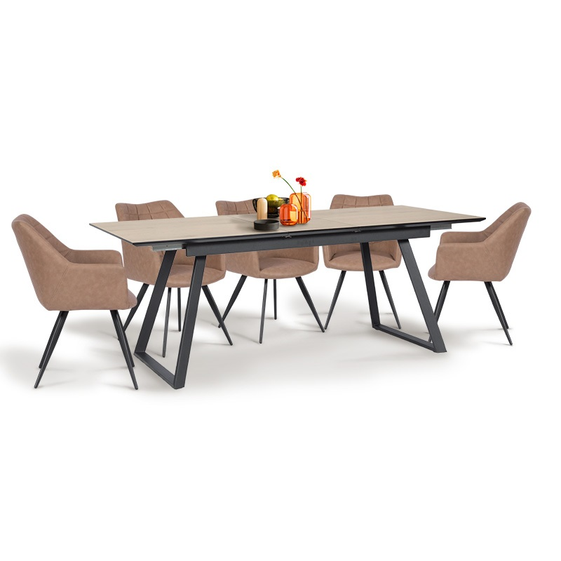 NIAGARA е стилна и модерна трапезна маса със стабилни метални крака. Плотът й е изработен от МДФ с меламиново покритие, което я предпазва от надраскване. Благодарение на функцията й за разтягане, можете да увеличите дължината от 160 см на 200 см. Пълна информация за размерите и характеристиките на модела ще намерите в таблицата в таб/поле "Техническа информация".