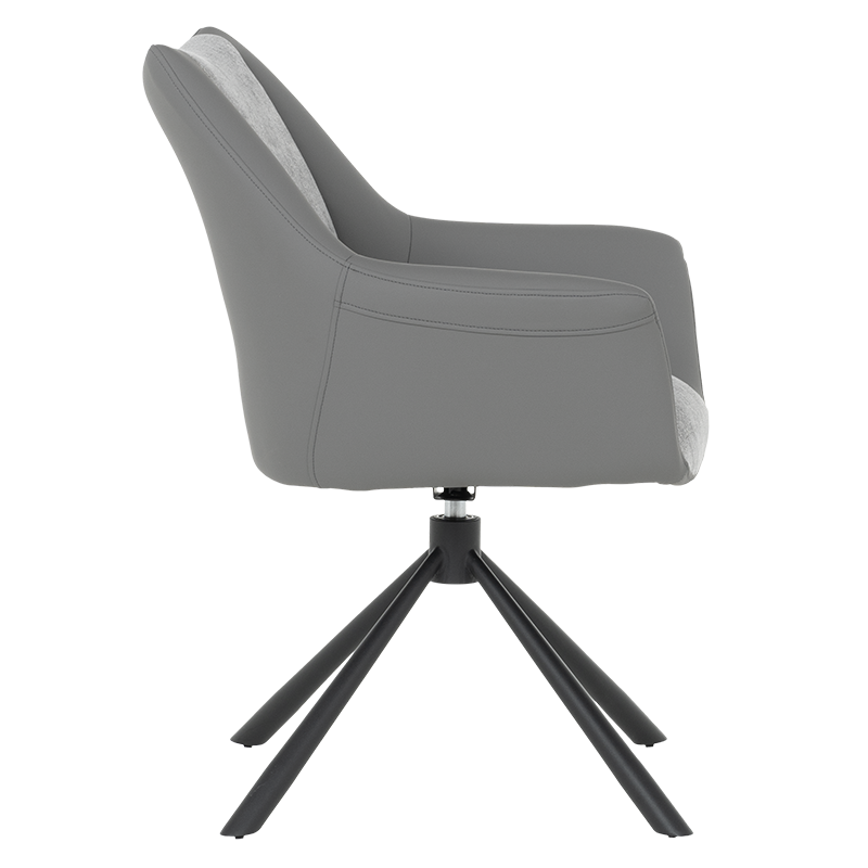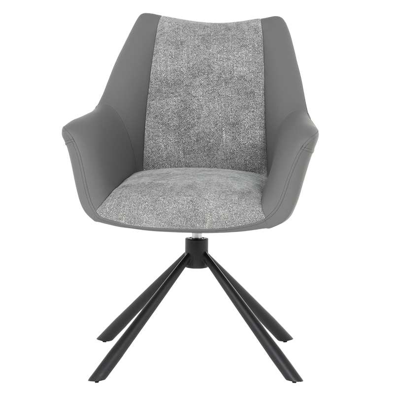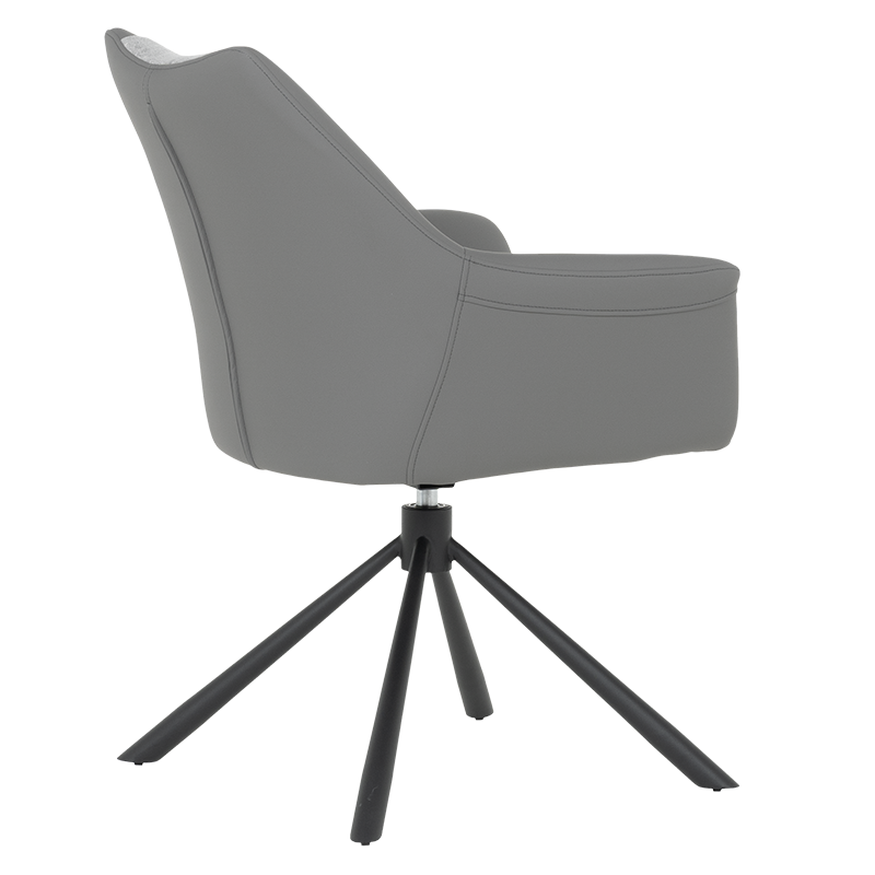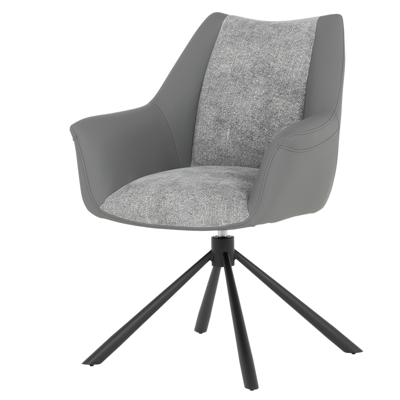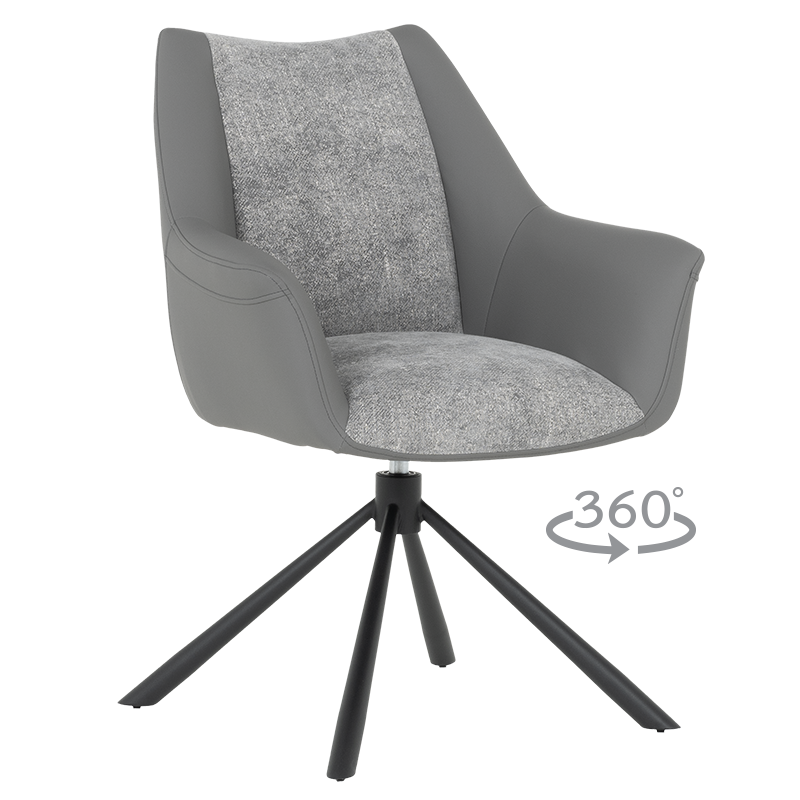 Трапезен стол TEMPE разполага с удобни подлакътници, широки седалка и облегалка, изработени от приятна на допир дамаска и висококачествена силиконова кожа. Интересната му основа е от метал, праховобоядисан в черно. Моделът има функция за въртене на седалката на 360° и връщането ѝ в изходяща позиция. Пълна информация за размерите и характеристиките на модела ще намерите в таблицата в таб/поле "Техническа информация".